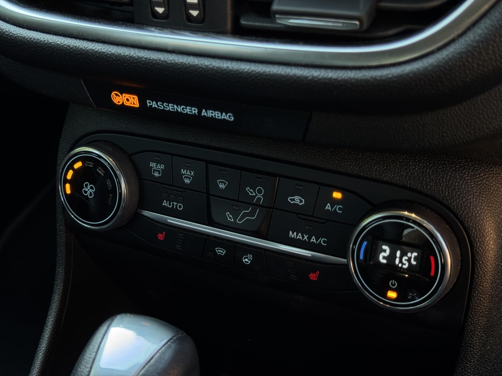Inside, the Fiesta continues to impress with the B&O PLAY Premium Sound System paired with SYNC 3 Navigation and FordPass Connect, enabling real-time traffic updates and remote vehicle access. Other comfort upgrades include heated front seats, a heated steering wheel, and Ford's Quickclear heated windscreen—ideal for winter starts. The Comfort Pack ensures both driver and passenger benefit from height and lumbar adjustment, while ambient LED lighting and high-quality trim materials give the cabin a truly premium feel.