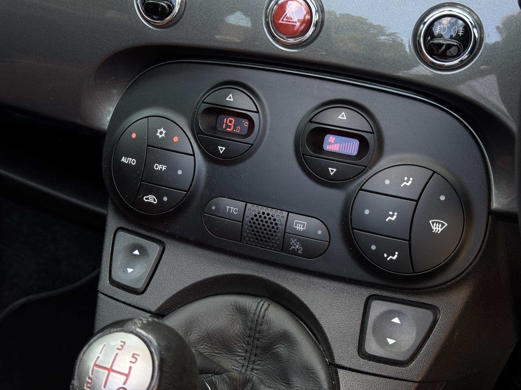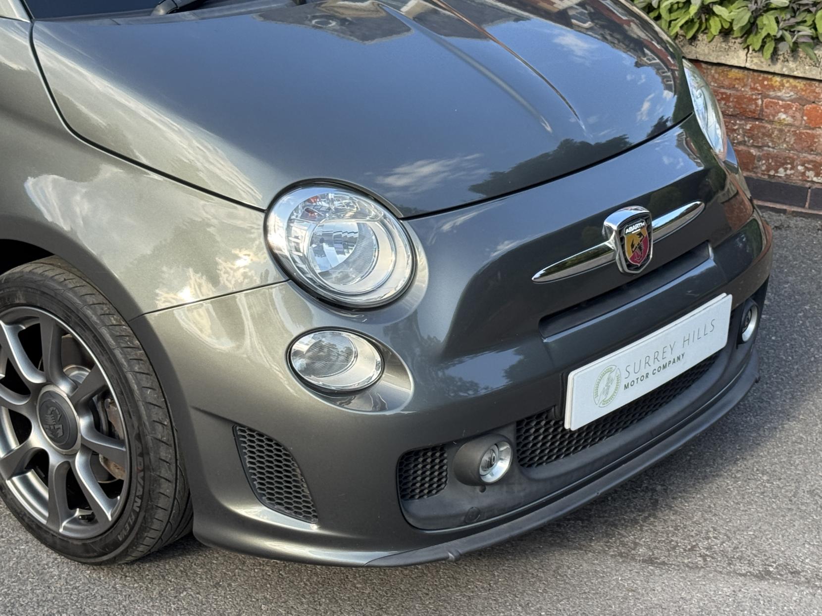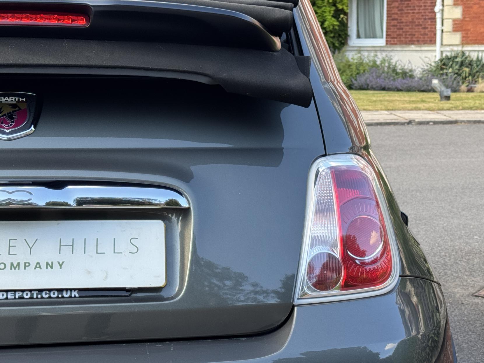 Finished in Circuit Grey with a black fabric roof featuring a grey centre stripe and a matching grey rear spoiler, this is an especially well-specified example of the convertible 595C. Its twin-exit satin exhaust and 16" 8-spoke anthracite alloys give it classic Abarth character, and its condition inside and out is consistent with light family use.