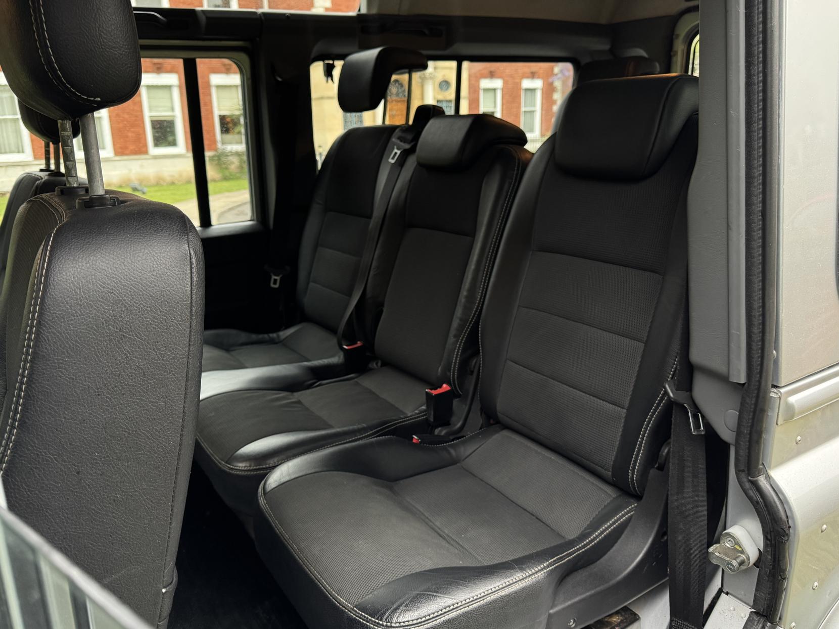 The XS trim is considered the most desirable factory specification of the Defender range, combining utility with refinement. It includes air conditioning, part-leather heated seats, ABS, traction control, heated windscreen, electric windows, remote central locking, and body-coloured wheel arches, roof, and front grille. These features add genuine day-to-day usability and comfort without compromising the Defender’s utilitarian roots.